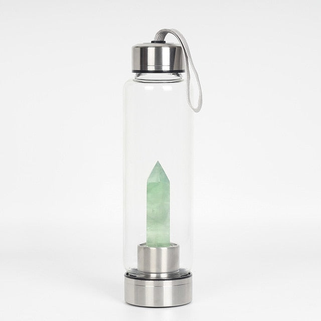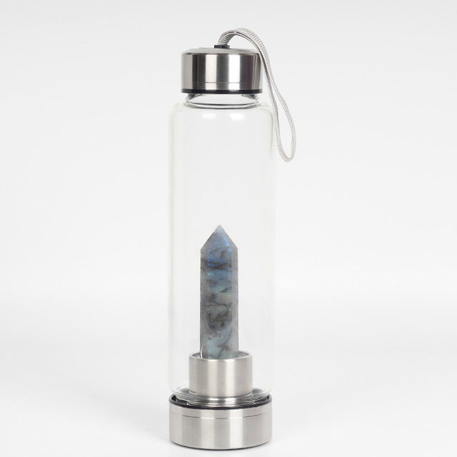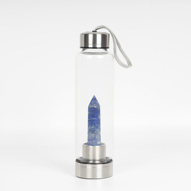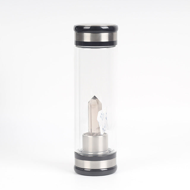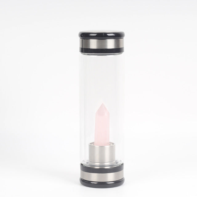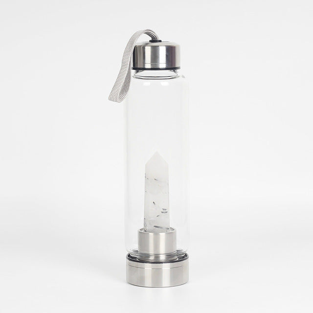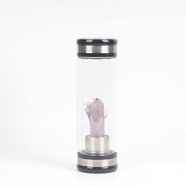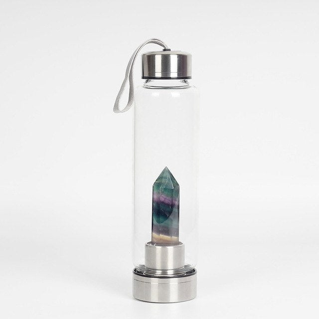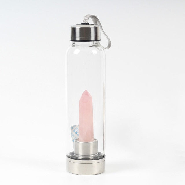 This is an water bottle with natural quartz crystal. Yes, how exquisit is is to have part of Mother Nature in a bottle (water and quartz crystal). Choose the quartz crystal color that you feel energetically moved towards the most. Great for a birthday or holiday gift for yourself, friends or family.