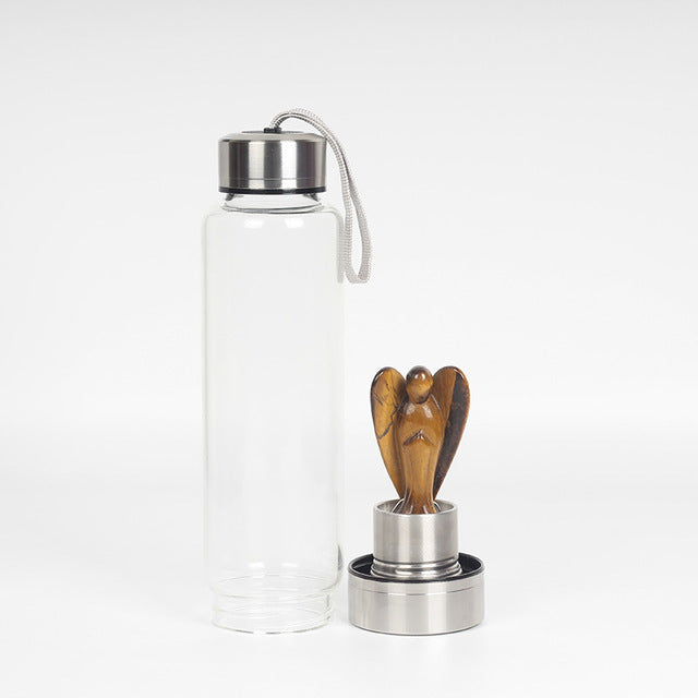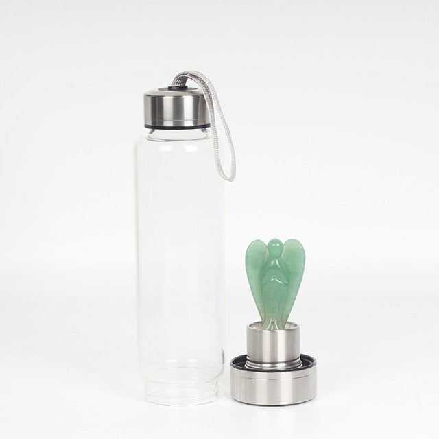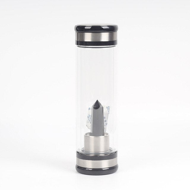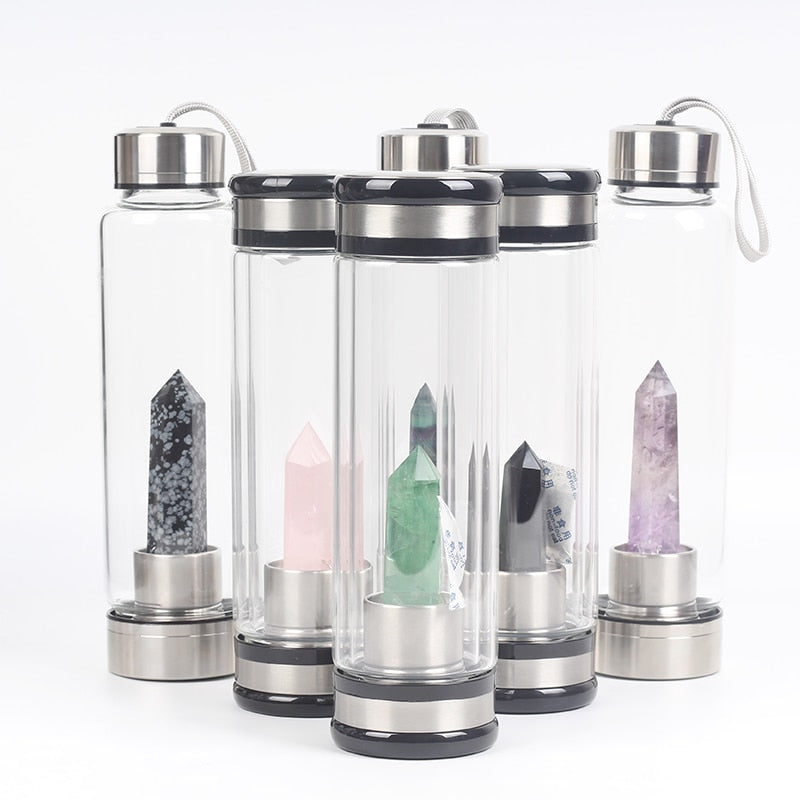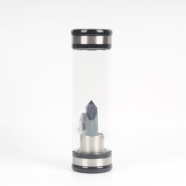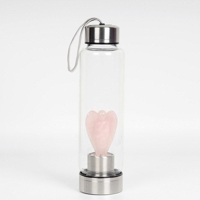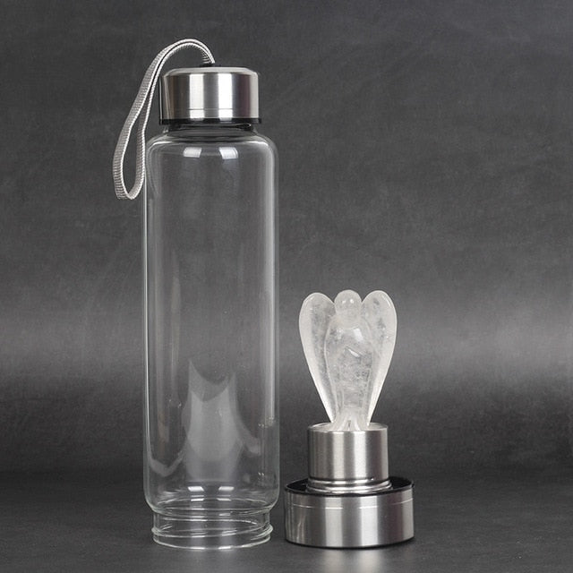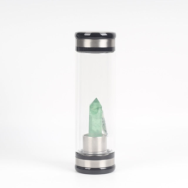 This is an water bottle with natural quartz crystal. Yes, how exquisit is is to have part of Mother Nature in a bottle (water and quartz crystal). Choose the quartz crystal color that you feel energetically moved towards the most. Great for a birthday or holiday gift for yourself, friends or family.